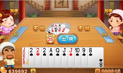 欢乐斗地主玩法详解:一家地主,两家农民,和传统斗地主并无明显区别,游戏中允许连带三带一、四带二、顺子、连对等